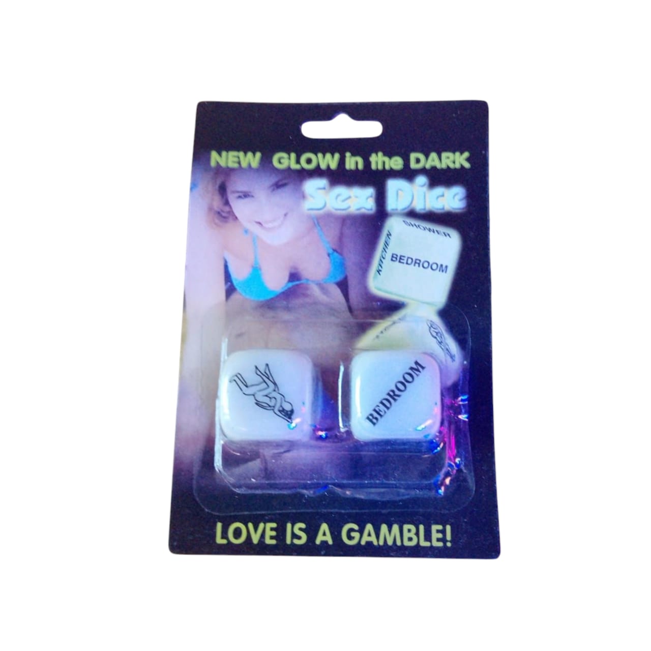 Dados fosforescentes que brillan en la obscuridad juega con tu pareja en el lugar que gustes con 6 posiciones diferentes y 6 lugares para poder salir de la rutina.